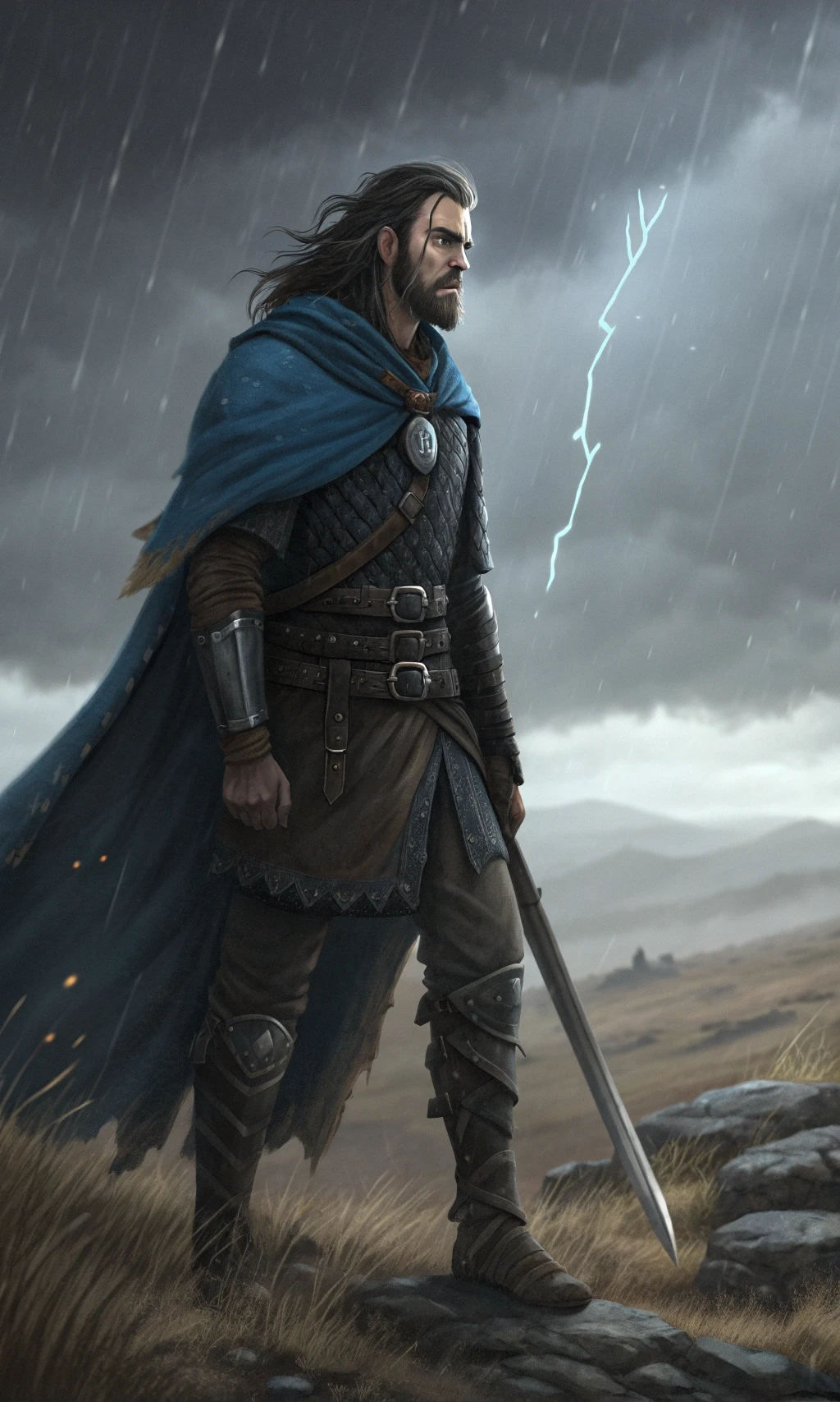 Gale-forged resilience defines this Fantasy character prompt, perfect for writers craving a deeply atmospheric and stoic protagonist. You get a weathered male figure in his mid-30s, complete with piercing storm-gray eyes, a tattered cloak, and a backstory etched in scars and silver-streaked hair. The detailed prompts set him against a desolate, rain-lashed plain, providing rich fodder for book covers, story intros, or building a solitary hero who defiantly challenges his own turbulent past.